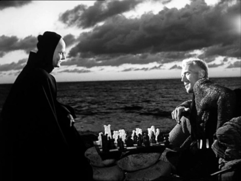 "O Sétimo Selo" é uma fábula medieval,influenciada pelo entusiasmo do diretor pelos filmes de samurai de Akira Kurosawa,sobre um cavaleiro que esta retornando das cruzadas,e ao encontrar sua vila extirpada da humanidade,devido a peste negra,sente que a sua fé em deus,fica abalada.Em sua companhia,esta seu escudeiro,que por vezes,serve de sua escada.O auge do filme,é definitivamente,quando Antonius Block(Max Von Sydow) encontra-se com a morte em pessoa. Ela decide que a hora de Block chegou,e ele, recusa-se permanentemente a morrer. Entra então, uma das passagens mais clássicas da história do cinema, por tantas vezes parodiadas como em "A Ultima Noite de Boris Grushenko",de Woody Allen e "A Máscara Mortal",de Roger Corman. A cena passou a representar todo o filme, no imaginário popular. O centro das idéias no jogo de xadrez com a morte,não é apenas a vida do cavaleiro,mas suas idéias sobre deus,a religião e a humanidade.